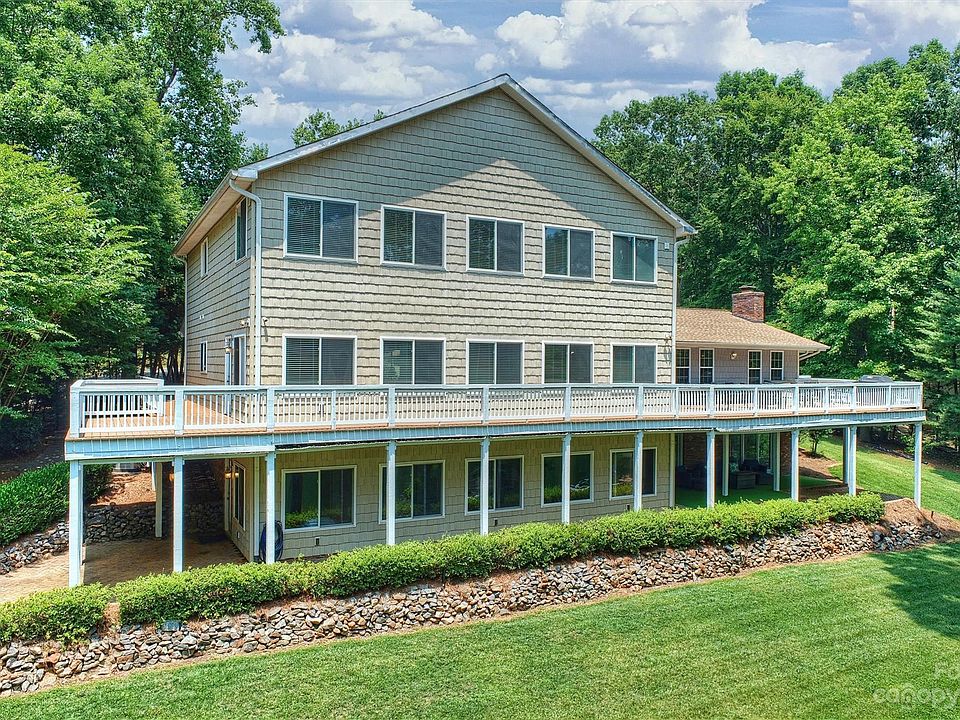 Casual lake living at its finest! Take advantage of a rare chance to own a .80 acre, 7400+HLA, deep water, waterfront property, w/ the amenities of a summer retreat. Located in a lg cove, this open & spacious home offers plenty of options for entertaining, water sports & more. Upon entry, you're welcomed by a spacious great room, bar area & 42’ sun porch. Enjoy meals in the lg kitchen w/ oversized island or walk to the adjacent deck for alfresco dining. For total privacy & ultimate relaxation, head up to the light filled primary suite boasting oversized living qtrs, hardwoods, 160sqft of closets, jetted tub/shower, dble sinks & more. The main level offers 1 BR, formal dining, study & 2.5 baths. The walk out basement offers a full kitchen, dining, den w/ fireplace, great room, office, 2 BR, 2 full BA and covered porch. Currently used as a vacation rental with great investment income, but is also perfect for an owner occupant w/ plenty of room to grow. Close to LN State Park.