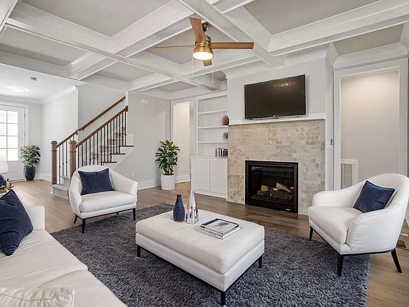 Gas fireplaceCharming front porchCoffered ceilingsTray ceilingBright open floor planGranite countertopsTwo-car garage