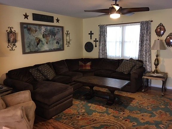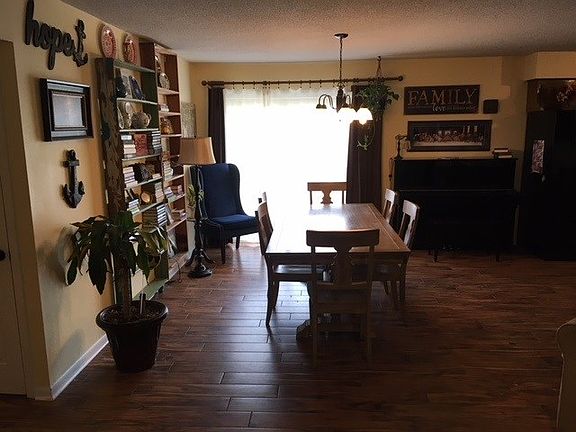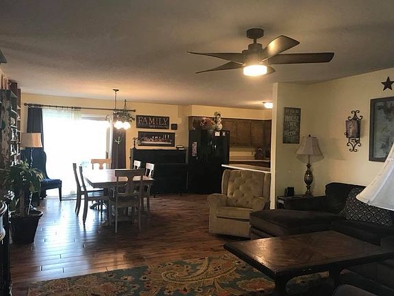 Four bedrooms and two baths with an open floor plan, 1470 square feet of living space. Updates to appliances, paint, counters and floors all less than to two years old. Living room, kitchen, dining and hallways all covered with beautiful and durable ceramic hardwood. Low maintenance brick and vinyl exterior. Over size two car garage has plenty of space for a shop area plus a 12' x 14' building in the backyard. Large fenced backyard with a nice swing set, mature oak trees shade the front yard. Close to shopping and schools.