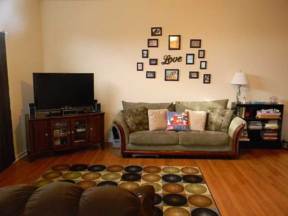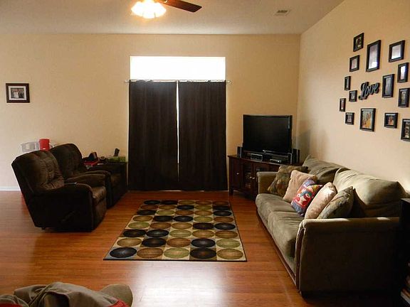 Welcome home! Open floor plan w/beautiful laminate hardwoods in Living Room & Dining Room. Split floor plan for bedrooms. Master w/tray ceiling, walk-in closet, double vanity, garden tub & sep shower. Nice backyard w/deck & double gate. New heating & air summer 2015 per seller.