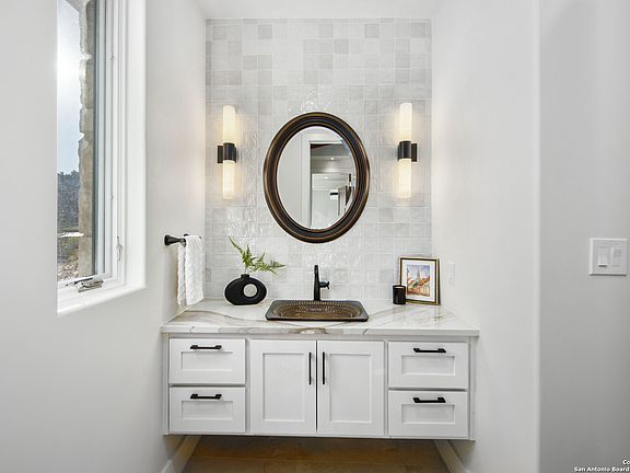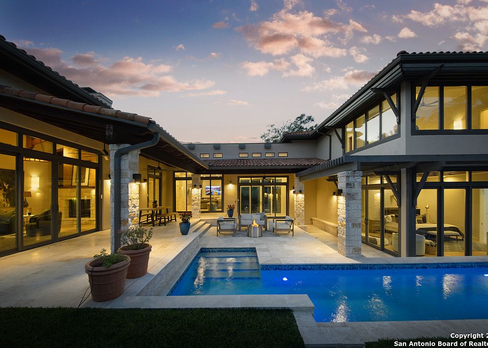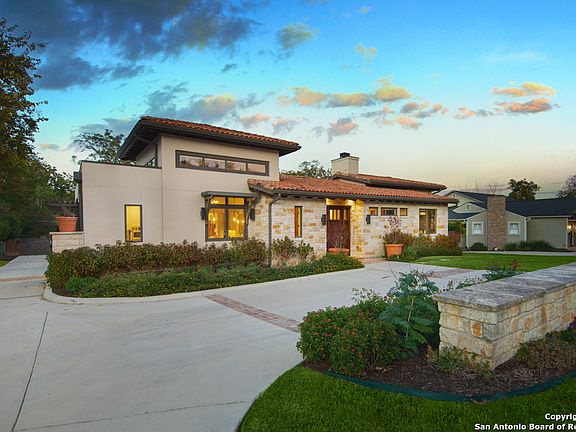 Newer 2023 custom build in Terrell Hills with all the work done for your buyer! Recent purchase and sale conveys inspections and and corrections that have been performed and improved to include a recent appraisal with the home's value! This home seamlessly blends contemporary design with classic Mediterranean elements - 113 Tuttle Rd boasts 4946 Square Feet, described by Alamo Architects as Contemporary Timber-frame Mediterranean and feels like you are in Italy. Abundant natural light in every room in the home with floor to ceiling Pella windows and glass doors with newly installed screens (to the doors) allowing for delightful natural and bright cross breeze. Five en suite bedrooms with front powder room, this home utilities heavy timber, soft travertine partnered with wood flooring, limestone columns and alabaster sconces throughout. Chef kitchen has 10-foot-long quartz island, tall timber framed ceiling, abundant kitchen storage with Decor appliances and multiple cooling drawers ideal for entertaining. The glass enclosed wine cellar is situated off the kitchen with a picture window view. Family room off the kitchen hosts a media center to allow for combined entertainment space with courtyard views. Formal dining and formal living room share a floor to ceiling limestone and bronzed-stucco fireplace with cathedral ceilings finished with the same Douglas fir trusses in other areas of the home. The intimate master suite with warm ceiling treatments occupies the downstairs back wing of the house. Master suite offers a luxurious retreat for the homeowners featuring more floor-to-ceiling windows that frame stunning views of the surrounding landscape and pool. A secondary en suite bedroom across from the master offers a coffee bar and soothing views of a private lush landscaped courtyard. A third downstairs en suite bedroom for a maids quarters or nursery Upstairs hosts two more en suite bedrooms with large closet spaces and excellent views of the pool and yard. The design of the home incorporates views of the waterfall rectangular pool in all the major living and bedroom spaces. The abundant multi-level travertine expansive patios and courtyards blur the lines between indoor and outdoor spaces, encouraging a relaxed lifestyle that embraces nature. Car enthusiasts can enjoy a tandem four car garage with epoxy floor. The garage is over 1000 square feet, with roll up doors on either end leading to the automatic gated entries into the alley. This home has it all but especially natural light, gorgeous landscaped views and storage for home and cars!! This is an excellent opportunity to move right into a luxurious and well built Italian villa in the heart of Terrell Hills.