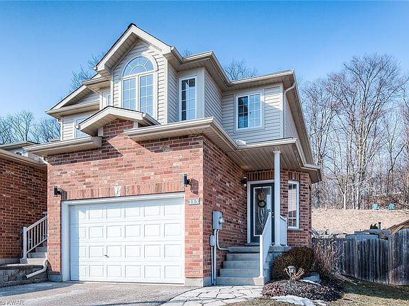 Gorgeous 3 bedroom 4 bath End Unit FREEHOLD (NO Fees) Town home completely finished top to bottom. Bright and spacious open concept main floor with spacious living room with new laminate flooring, well equipped kitchen with an abundance of cabinets, new granite counters, backsplash, dinet with sliders to tiered deck, hot tub, shed and fenced yard. Upper levels features high ceilings, separate laundry room, 4 pc main bath, 2 large bedrooms, Primary bedroom has beautiful ensuite and walk in closet. Impressive lower level features features built-in storage and office area, gas fireplace feature wall, large rec room and 3 pc bathroom with glass shower. Main and Upper level freshly painted. 1.5 car garage with double wide driveway. This home has easy access to 401, Guelph, Cambridge, Chicopee Ski Hill and all amenities. Home shows extremely well!