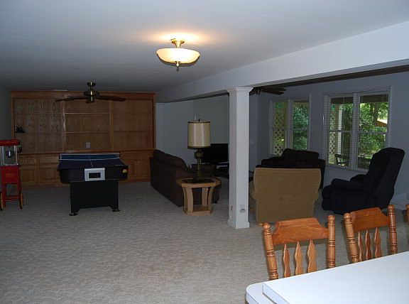 REDUCED!!!House was originally built in 1981 but an addition was built in 1998 along with new HVAC system. It has a large open kitchen with a double oven and large den/living room with an eat-in bar and a separate dining room.There is a laundry room with sink to drop your wet clothes as you come in from the lake. Very flat lot that has cement walkway down to the boathouse. Dock has a lower level for pulling jet skis up to and a bench for gazing at the wide cove that is a short distance to the main lake w/no bridges. Some large trees for shade but a wide, unobstructed view of water front!!A porch on lake side of house for relaxing and looking out at the water and also a patio made of large stones for your grill. GREAT STARTER LAKEHOUSE!!! Renter pays monthly to visit about 2 weekends out of month and keeps up the house!!!
