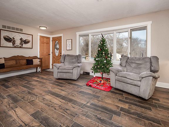 Welcome to this fabulous 4-bedroom home in the enchanting Timber Valley neighborhood, where the perfect blend of comfort and character awaits. This residence has been updated and adorned with unique features, making it a true gem in the heart of tranquility. As you enter, the warmth of the wood look ceramic tile floors embraces you, creating an inviting atmosphere throughout the home. The custom trim work adds a touch of character to every room, creating a sense of elegance and craftsmanship. The family room is a focal point of relaxation, featuring a fabulous accent wall crafted from reclaimed barn wood and tin that surrounds the wood-burning fireplace. This charming addition not only adds a rustic touch but also serves as a conversation piece, making the family room a cozy haven. Indulge in the luxury of two full bathrooms, both showcasing updated vanities and stylish light fixtures. The thoughtful renovations seamlessly blend modern aesthetics with the home's timeless charm, providing a perfect balance of contemporary convenience and classic allure. Beyond the updates, this home offers a serene retreat, nestled within the Timber Valley neighborhood. The surroundings are a harmonious blend of nature and community, creating a tranquil environment for you to call home. In this exceptional residence, you'll find the perfect harmony of comfort and character—a place where modern sophistication meets timeless charm.