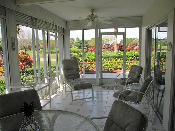 Bright, light, airy villa overlooking golf course. Views from living room, dining area, kitchen, and screened porch. Well maintained. Roof replaced in 2012. Updated master bath with large walk-in shower. Cove ceiling in kitchen. Carport. Easy access to pool across the street. No pet restrictions, can lease 3x a year Perfect winter or full time home.