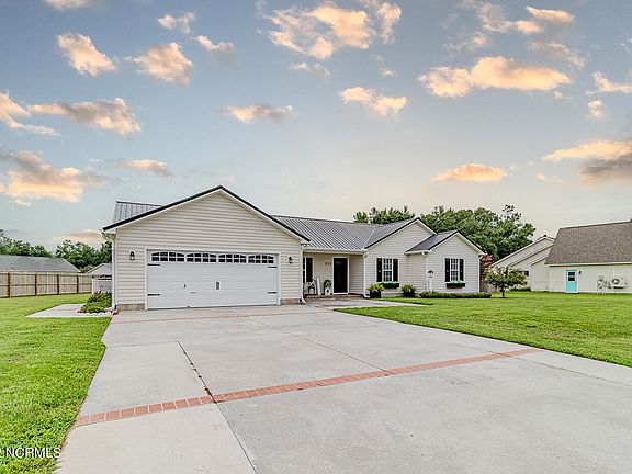 Welcome home to Villa Park with NO HOA's! This beautiful 3 bedroom 2 bath home offers great curb appeal with extended front porch with a cobblestone look. Metal roof 2018 with 40 year transferable warranty. Newer HVAC installed 2020. Recent updates include LVP flooring in main living area & fresh paint throughout the home. Enjoy the screened in back porch & large backyard with a workshop on it's own cooling & heating system with tons of storage. Conveniently located to HWY 172 back gate to base, beaches & historical Swansboro!