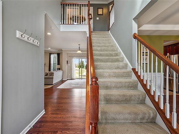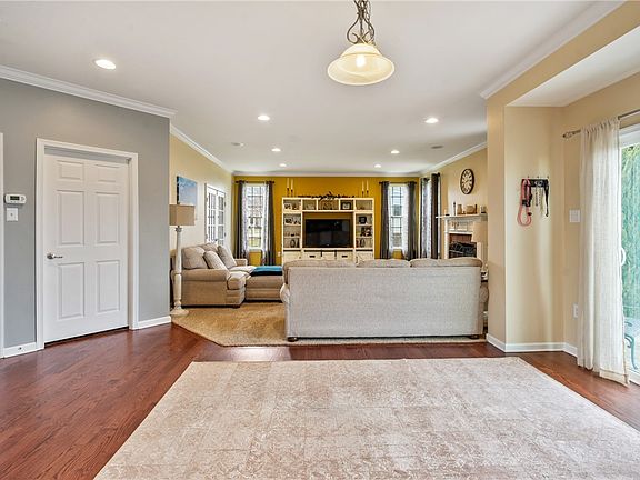 This beautiful 4 BR, 2.5 Bath home has been meticulously maintained and is bursting with elegant details throughout. The welcoming 2 story foyer leads to a spacious semi-open layout. The inviting LV room offers a gas fireplace and opens to a private home office through elegant French doors. The DR features a tray ceiling and decorative wainscoting. The kitchen is a delight and boasts quartz countertops, tall cabinetry, SS appliances, tile backsplash, pantry, a center island with seating and opens to the casual dining area! Upstairs the expansive owner's suite impresses with vaulted ceilings, a huge walk-in closet, and a spa bath with a soaking tub, double sink vanity, and a walk-in shower. The lower level features a large finished game room with a gas fireplace, perfect for gatherings. Enjoy outdoor living on the concrete patio. Located in the charming Fayette Farms community, just minutes from Robinson Town Center and local attractions. This home is truly move-in ready!