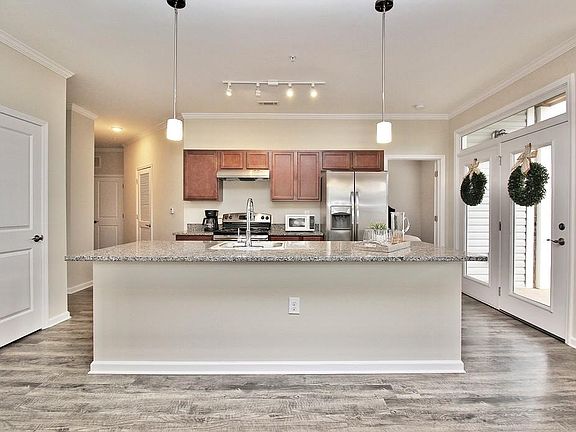 North Main Village Luxurious 2 bed/2 bath apartment. This 2nd floor, 1,095 sq. ft. corner unit with balcony facing East has everything that you have been looking for! The Hunter I model has an vivid open layout with many windows, split bedroom floor plan, light gray laminate wood flooring, stainless steel appliances, granite countertops, sizable bedrooms and no shortage of attention to details such as high ceilings, crown molding, ceiling fans with stylish light fixtures, faux wood blinds with no strings attached, an island kitchen and much more will be sure to please anyone desiring to move to the up area of downtown Mooresville! Garages available for $150 monthly fee. Valet Trash pick up. Pet friendly up to two pets. Elevator in Building. Wheelchair Accessible Bedrooms. Washer & Dryer. Water & Sewer Included in the rent. One month's rent security deposit and $100 application fee. Short Term Lease. VIRTUAL TOURS northmainvillage.com