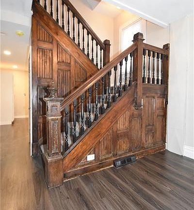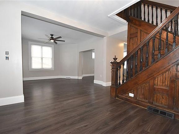 COMPLETELY RENOVATED all brick house features 4 bedrooms & 1.5 bathrooms. The foyer is welcoming & showcases the beautiful wood work on the entry stairs. OPEN CONCEPT first floor flows from the living room to the kitchen & dining room. Fully equipped kitchen has solid wood white cabinets, granite counter tops, & stainless steel gas stove, microwave, & dishwasher. Huge pantry & lots of counter top space is the perfect kitchen for a family & entertaining. Off the kitchen is the rear deck that has great views of the back yard. Main floor also has a spacious partial bathroom with new vanity, flooring & toilet. Master bedroom is generous size & can easily accommodate a king size bed. Full bathroom on second level was tastefully renovated with high-end porcelain tile flooring & shower with huge vanity & satin nickel finishes. LAUNDRY ROOM ON 2ND LEVEL is very convenient. HUGE 3rd level with walk-in closet. Many upgrades: electrical, roof, plumbing, flooring, Furnace & A/C, & LED lighting.