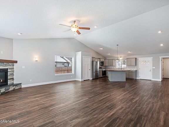 One level living at it's finest! Built in 2018 this home has received landscaping both in the front and backyard. This like new home has laminate flooring throughout the main living areas, Gas forced air and central a/c, cathedral ceilings, custom cabinetry in the kitchen along with a spacious master suite. Build a shop in the back with access through the alleyway. No Hoa's or CC&R's! Just minutes from everything, Schools, Shopping and I90! Must see!
