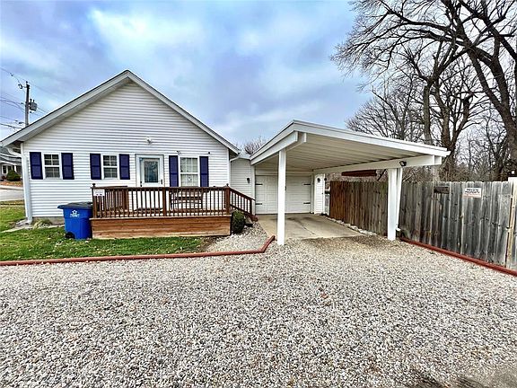 2 bedroom 1 bath in a desirable area. Lots of outdoor living space with a fully fenced rear yard designed for privacy. Several seating areas with a firepit & party lights already in place! Inside is nice, neat & move in ready. Lots of vinyl plank flooring & a remodeled bathroom. Spacious eat in kitchen with appliances to remain and a door that leads to nice side deck overlooking the carport & 1 car garage. Partial basement area is in good shape and could be used for an office, play area or extra storage.