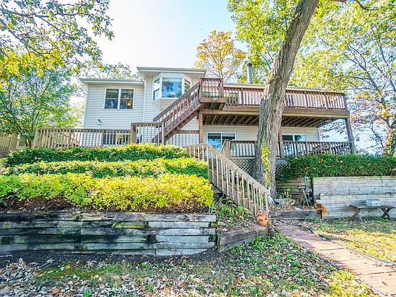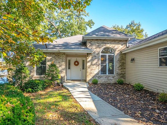 This hillside ranch affords views from 2 levels of decks to enjoy all day or night, from spectacular sunrises to moonlit reflections. Enjoy all the activities the lake has to offer. Entertain in the main level vaulted open concept dining, living and kitchen spaces as well as in the open walkout lower level. Three bedrooms include the master with an en suite bath with skylight. The large lower level has a spacious great room, second kitchen, 3/4/bath and possible 4th bedroom. Do not forget the wood burning fireplace on those snowy winter nights! ENJOY! All measurements are approximate.