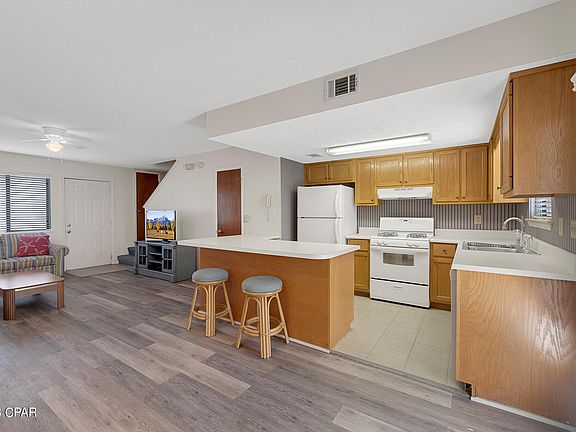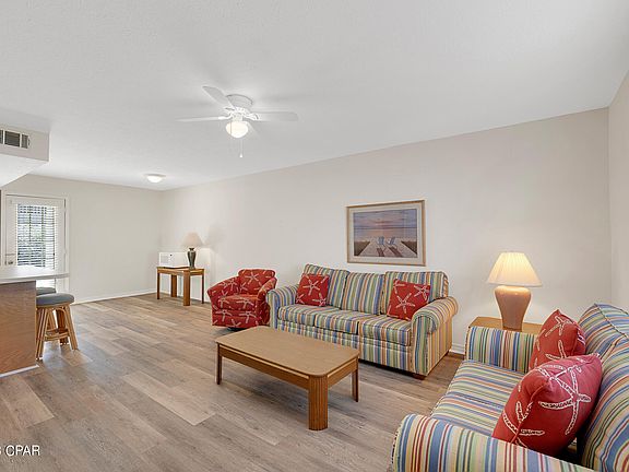 Located near the HEATED POOL, exercise room and the tennis court, walking distance to the dedicated access on Front Beach Road, making easy access to the beach and the Clubhouse. This well-maintained unit in Gulf Highlands Beach Resort has never been rented and only been used by its original owner and family. This 2-bedrooms/1.5-bath townhouse makes for a great short term rental property in Panama City Beach, Florida. The unit conveys fully furnished and rental ready and it can easily accommodates 6 to 8-guests. Living room has brand new LVP flooring, and seller just got a brand new dishwasher installed. There's a full bathroom upstairs, however, an additional full bathroom can be easily installed in the area the previous water heater tank used to be since a tankless water heater has been installed. The back patio comes with the concrete patio furniture, so you don't have to worry about flying around during Florida pesky weather. The seller is providing a recent 4-point and wind mitigation report recently done for insurance purposes. Located on Flood zone X, no flood insurance is required, Roof is 10-years, HVAC is 11-years old. Low HOA fees, Long and Short-Term Rentals allowed. Gulf Highlands Beach Resort is a gated community with 11 swimming pools (5 heated), 4 tennis courts, a 2-acre putt-putt golf course, shuffleboard courts and Clubhouse with a pool on the beach. All measurements are deemed correct, buyers should verify if they are important.