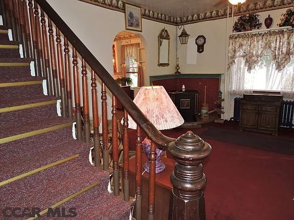 Please pardon our messiness as we pack and get ready for our auction. There is great potential in this historic home in downtown Rebersburg. The original front porch has been enclosed as a bright sunroom. The first floor includes a formal living room and parlor. The staircase is beautiful and begs to be brought back to its original glory. The cute country kitchen is large and adorable. There is a formal dining room off the kitchen and a huge hobby room/workshop beyond. The second level features an oversized master bedroom, 2 additional bedrooms, a full bath and extra storage. The walk-up 3rd floor attic is huge and could easily be finished. This home needs some updating in order to show its true character and period details. Wood floors are under the carpets, large back porch. Nice flat yard with detached garage and shed. This is a must see and is priced below appraised value of $105,000.