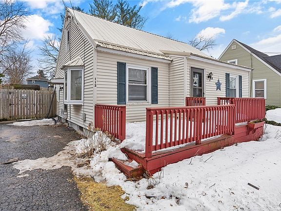 Conveniently located Mattydale Cape waiting for you to call home! This home sits on a large fully fenced lot, featuring a front deck, two-tiered deck in the backyard, shed/pool house with power and an in-ground pool! Inside you will find a sunny kitchen with plenty of oak cabinetry, some newer appliances, a breakfast bar and exit to back yard. There is a spacious living room with laminate and parquet flooring, with an exit to the front deck and a bay window to let in loads of natural light. There is also a formal dining room, a good sized bedroom and a full bath. Step into the huge addition that was added as an en suite/in-law apt, which features a full bath and a slider to the back deck and yard. There is also a first floor laundry with new washer and dryer that stays with the home. Step through the slider and relax on your two-tiered deck, or take a swim in the pool-what a great summertime space! On the 2nd level of the home you will find a landing area with storage areas and past that another bedroom. Located just off Route 11/Brewerton Rd and close to both Roxboro Elementary and Roxboro Middle school and minutes to Route 81, shopping and amenities. Don't miss this one!