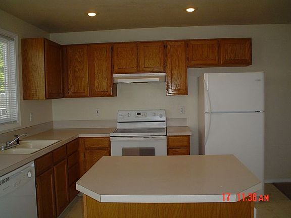 Great home! Island kitchen has refrigerator, flat top stove, dishwasher, disposal, and pantry. Eating area has door leading outside to patio and large fenced yard. Living room has vaulted ceiling with fan and arched front window. Master bedroom suite has door leading to back yard, good size closet, and bath has dual sinks. Laundry room has washer/dryer hookups and utility sink. 2 car garage with opener. Gas heat and central air. Available 10/15/2013