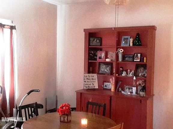 Nice sized enclosed front porch, large front living room, half bath, formal dining room, bedroom, kitchen w eat in area, large back enclosed porch and garage that is wider then 1 car. Upstairs has 3 bedrooms and a full bath. LL has hi eff GFA new in 2003. Fenced backyard.
