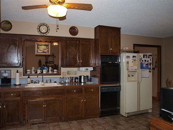 Well kept home located on half acre lot. 3 living areas. Living room with bay window. Large family room off kitchen with custom oak flooring, deck access and gas fireplace. Main bath has garden tub and 2 sinks. Kitchen has new vinyl. New Pella windows. Newer CH/CA. Partial finished basement has closet and could be 4th bedroom but would make nice office/den etc. Storm shelter behind garage. Storage building. Lots of room for the money.