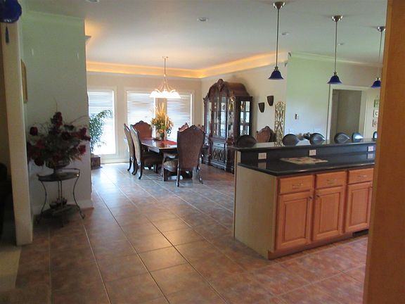Main level: Formal Lr, Master Suite (utility off master bath), Office (5th Br), 1/2 bath, Den & Formal dining areas are open to kitchen w/large island/bar. 2nd level: Game Room w/pool table, Kitchenette, 3 Brs/2 Bhs. Completely secluded~14.547 acres w/~2 acre pond & 2 detached buildings:(36x24 block & 40x50 metal w/concrete floor) Breezeway connects garage to unique 1200 sqft "recreation room" could easily be converted into in-law quarters, home office, a awesome man-cave... Must see, bring offers.
