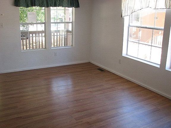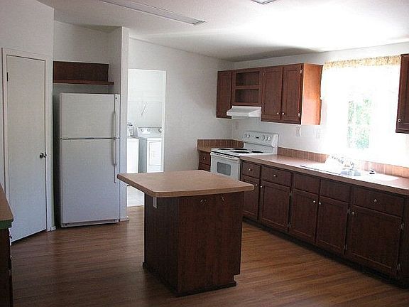 Two beautiful willow trees in front yard and a covered porch welcome you to a light & bright home; Open concept home offers low maintenance laminate wood flooring and natural light from multiple windows; Large kitchen with an island, lots of counter space, nice cabinets, refrigerator, & walk-in pantry; Dining room to accommodate oversize table;Master bedroom with walk-in closet and master bath with dual vanities & additional closet; Large laundry includes washer & dryer, and access to deck; Home is clean and move-in ready.