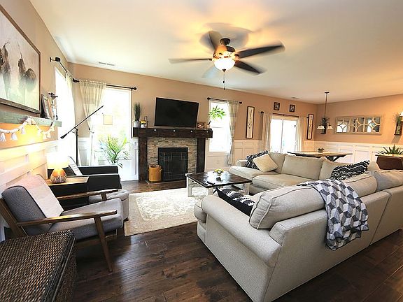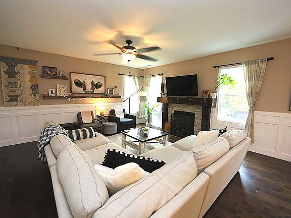 Beautifully Updated Palmer C Plan on Extensively Landscaped Lot! Updates include Designer Lighting & Wainscoating throughout 1st Floor! Hardwds on 1st Floor! Foyer w/ Arched Entrance! Spacious Family Rm w/ Gas Log Fireplace, Stone Surround & Ceiling Fan! Wonderful Island Kitchen w/ White Cabinets, Granite Tops & Tile Backsplash! Master Bedroom w/ Trey Ceiling & Barn Door! M. Bath w/ Dual Vanity Sinks, Garden Tub & Shower! Screen Porch, Patio & Firepit! Awesome Back Yard Retreat w/ Steps, Deck & Swing Set!