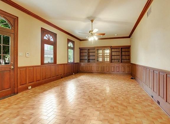 Fabulous spacious home with detailed woodwork .Beautiful leaden glass door surround. Crown moldings, chair rails and paneled half walls, Many.lovely brass chandeliers which remain. Each bedroom has a walk-in closet. Design the Kitchen to your desires. Large walk in pantry. Carport and separate storage building. Master bedroom(with new carpet)down Ten foot ceilings on first floor and nine foot on second floor.