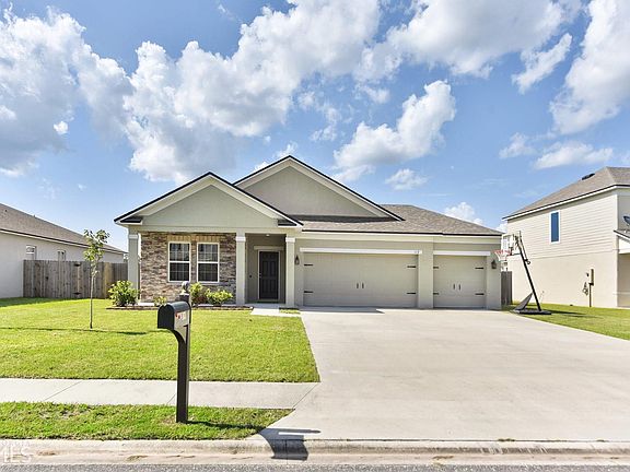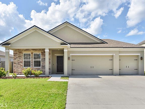 Move in ready! Immaculate home, better than new! Lush lawn front and back, fenced yard with views of the large pond in the back. Welcoming front porch, foyer entry, living room, family room is open to the dining and kitchen. Kitchen features granite counters, fully equipped, pantry, tall cabinets, drop zone near garage entrance with granite top, extended coffee bar with granite. Ceiling fans are in every room, the back porch is screened in and also has ceiling fan. Between the two guest rooms is a bonus area-great lounge space or office! The owner's bedroom has a step tray ceiling, large walk-in closet and private bath with raised double vanity, relaxing tub, water closet and separate tiled shower. There's room for everyone to park in this 3 car garage and large driveway! No HOA dues, centrally located near NSB Kings Bay.