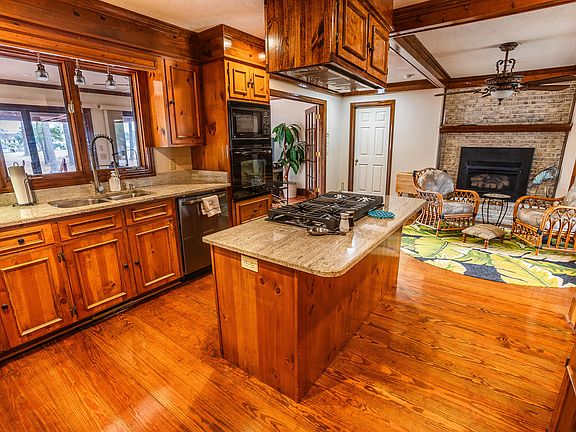 Welcome to this well-kept brick ranch home, a hidden gem nestled within the gated Santee Resort community, overlooking the scenic 17th hole of the golf course. This home is just waiting for your personal touch, offering 2,143 square feet of living space. Featuring 3 spacious bedrooms, 2.5 bathrooms, and a 2-car garage, provides ample room for both relaxation and entertaining. As you approach the property, a long driveway with mature landscaping welcomes you, there is plenty of off-street parking for guests and family. Enter through the double front doors into a charming foyer, where you will immediately notice the beautiful hardwood floors that flow throughout the home, complemented by wood molding and beamed ceilings that add character and warmth. The kitchen is a functional space thatpresents ample amounts of wood cabinetry, a central island with a gas cooktop, and an adjacent eat-in area or cozy seating space complete with a fireplace. This space is a perfect spot for casual dining or enjoying a warm beverage. The spacious pantry features built-in shelving, catering to all your storage needs. Connected to the kitchen, the large dining room has built-in cabinets, creating an ideal setting for entertaining friends and family during special occasions. Natural light floods the home, especially in the sunroom, which offers panoramic views of the lovely backyard and the golf course beyond, this space is truly a serene retreat to enjoy your morning coffee or unwind in the evenings. The spacious family room is designed for comfort, featuring plenty of space for your furniture and a large window that invites natural light, ensuring a bright and welcoming atmosphere. Retreat to the master bedroom, a private sanctuary complete with an en-suite bathroom featuring a dual sink vanity and a glass-doored shower for added convenience. The home also includes two additional generously sized bedrooms which share a well-appointed full bathroom with a shower. Step outside to discover a large, partially covered deck that overlooks the beautiful backyard, perfectly positioned to take in the views of the 17th hole on the golf course, a fantastic setting for summer barbecues or simply relaxing in the fresh air. Located near the serene Lake Marion and the amenities of the Santee Resort, this brick ranch home offers a unique opportunity to embrace a tranquil lifestyle in a sought-after community. While the home is well-maintained, it's ready for your personal touch to bring it into the modern era. Don't miss the chance to make this charming residence your own, schedule your private showing today!