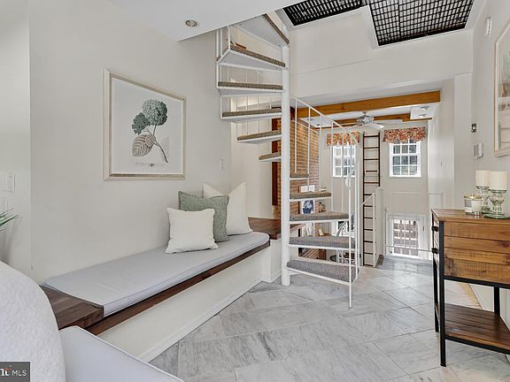 Rare Historic Otterbein gem! From the moment you enter this charming 2 bedroom, 1 bath townhome with exquisite architectural details throughout you’ll fall in love. Abundant natural light pours into every room of this well-cared for home. Entering on the parlor level featuring a cozy seating area and opens to the open-concept living area with soaring ceilings just a few steps below. The impressive living room feature 2-story brick fireplace sets the classic and cozy design and is just one of 2 fireplaces in this home. The living room also features built-in storage and leading to the kitchen a built-in bar for your favorite cocktails or coffees. Every inch of the kitchen has been carefully thought out to make the most of your cooking enjoyment featuring stainless steel appliances, granite countertops, built-ins and more. Just beyond the stunning living space is your very own gorgeous backyard secret garden, landscaped with brick patio and planting boxes. Step out to the perfect haven for your morning coffee, retreat from a busy day for you and a safe yard for your dog. There’s space for gardening, bbq’ing and starlite parties. Heading upstairs on the spiral staircase, the master bedroom is loft-style and features a seating area, built-in master closet, ceiling fan and stunning skylights. The other bedroom features the second beautiful marble hearth fireplace and a beautiful built-in cabinet and chest of drawers to help you optimize this plentiful space. Finishing off this floor is a full bath complete with shower and jetted tub. Tucked away on a quiet and beautiful cobblestone street in one of the most sought-after locations, you’ll appreciate the proximity to City amenities while being located on a peaceful, non-passthrough cobblestone street. The combination of your private, beautiful brick, fenced patio and location across from the community's Welcome Aly Park makes for the perfect setting. Just a few minutes away from the Inner Harbor promenade, the stadiums, and local shops and restaurants, and a true commuter's delight, as you’re just a stone’s throw from I95 and the Marc train. This townhome is not to be missed!