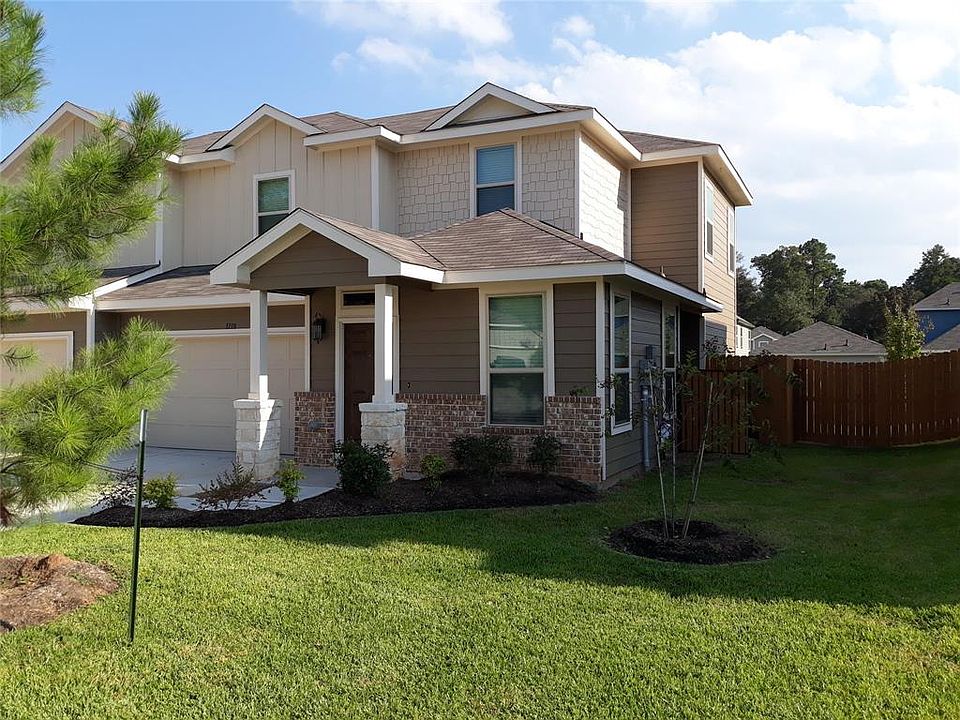 Brand new construction. Never lived in. High-end finishes throughout. 10' Ceilings, open concept floor plan, Wood-like plank tile flooring, Plantation blinds. Kitchen features Granite counters, GE Energy Saver Stainless Steel appliances - Refrigerator included, 42" cabinets, Designer tile backsplash. Very modern plumbing and lighting fixtures in both kitchen and bathrooms. Fenced in back yard with covered porch. Very close to shopping and restaurants. Front yard maintained by HOA