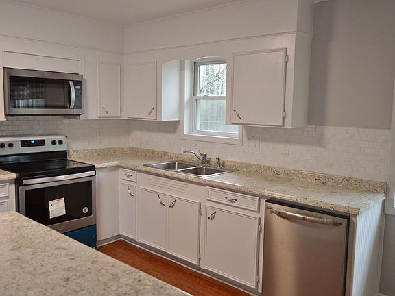 Where can you find a home this nicely updated for this PRICE??? Back on market! Under contract twice and Buyer's financing fell through. Roof & HVAC 1 yr old. New bath . Ext brick painted. New electric fireplace installed w/ stacked stone front. New: ceiling fans, stainless appliances & new plumbing fixtures except bath tub & kitchen sink. New custom island, new floors throughout except in hall bath Lot is open around the house, fenced yard. Back of lot is wooded, goes through to street in back. Third bedroom was made from enclosed carport. Has bath and closet. Has separate outside door, so could be home office, den, or hobby rm. Kitchen/ dining and living are all open. Owner is husband of listing agent. Measurements and acreage are approximate. Front walk installed and plantings. Location eligible for 100% USDA Financing. If more improvements are made, price will adjust upwards.