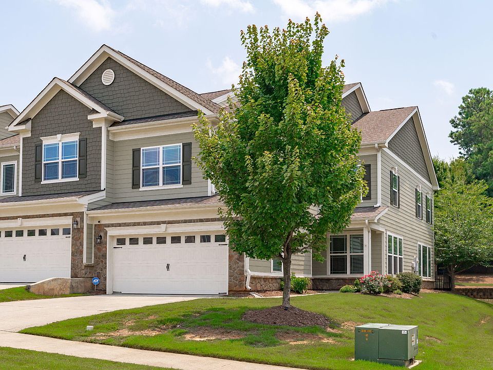 Welcome to the end-unit townhome that brings the wow factor to everyday living. With custom accent wals, upgraded lighting, and designer walpaper, this home blends modern flair with cozy charm from the moment you walk in.Downstairs, the wide-open layout shines with dark hardwood flooring, crisp white trim, and beautiful milwork. The formal dining space sets the stage for dinner parties or weeknight takeout in style, while the dedicated office/flex room—with stunning natural light and walpapered accent wal—offers the perfect WFH setup or creative zone.The living room delivers comfort with a fireplace framed by custom built-ins and shiplap, al wrapped in a wal of windows that fils the space with sunlight. The kitchen features granite countertops, classic backsplash, and touches of warmth that make it feel like your favorite café—especialy the charming eat-in nook just steps away.Need a quiet escape? Step into the enclosed sunroom, equipped with a wal unit for year-round climate control—your new favorite reading nook, plant haven, or cozy retreat.Upstairs, you'l find a spacious primary suite with an updated bathroom and walk-in shower. A second bedroom is generously sized—practicaly a second master—and there's a third ful bedroom plus a flex room that just needs a closet to become your fourth.Beyond your wals, the active community offers access to a pool, clubhouse, playground, tennis and basketbal courts, sidewalks for evening strols, and direct greenway access for weekend adventures.This home isn't just move-in ready—it's move-in stylish.