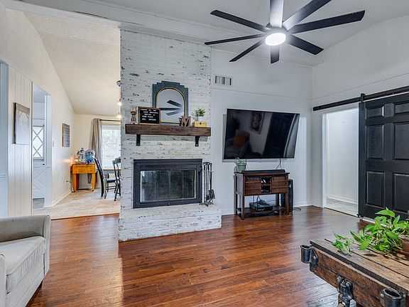 Large fenced backyardSplit floor planCovered patioLarge brick fireplaceVaulted ceilingsCustom wood wallGenerously sized bedrooms