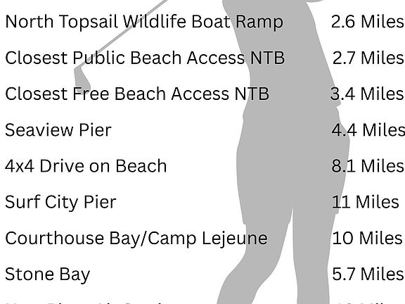 Outside, the appeal continues with a huge deck that overlooks a quaint backyard surrounded by mature trees, offering a serene retreat and plenty of privacy. This home is a nature lover's dream, with ample wildlife in the wooded area behind the property. Residents can enjoy the benefits of living just 2.6 miles from a boat ramp and 2.7 miles from the beautiful beaches of Topsail Island. With Camp Lejeune (6.9 miles) and Stone Bay (5.6 miles) nearby, plus quick access to Jacksonville (20 minutes) and Wilmington (40 minutes), this location is truly unbeatable.