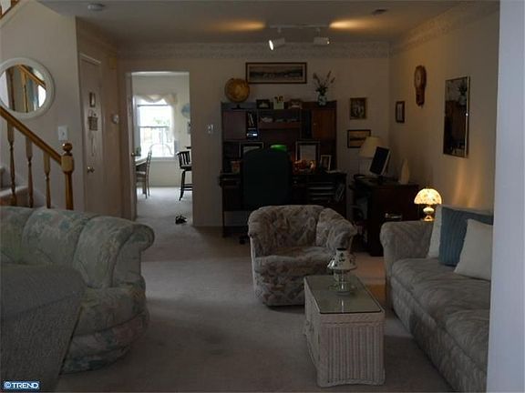 Absolutely adorable "one of a kind" townhome in desirable Rolling Hills East, Westampton. Original owner has taken great pride and it shows! Beautifully landscaped and across the street from the playground and extra parking lot offers the best location in this development. Spacious living area with cozy wood burning fireplace. Den/office can be used to your liking. Your bright and generous kitchen is sure to delight with your breakfast nook, ample dining area for entertaining. 1st floor laundry room with plenty of storage throughout! Large Master suite attached to jack & Jill bath with ample closets. Remodeled master bath with tile floor and beautiful upgraded shower. French doors lead to 3rd bedroom or den with pergo flooring and access to 2nd bedroom. Some newer windows, newer roof, security system and more! Relax or entertain on your 18X20 2 tier deck this summer! 1 car garage! Great commuter location with NO DUES!