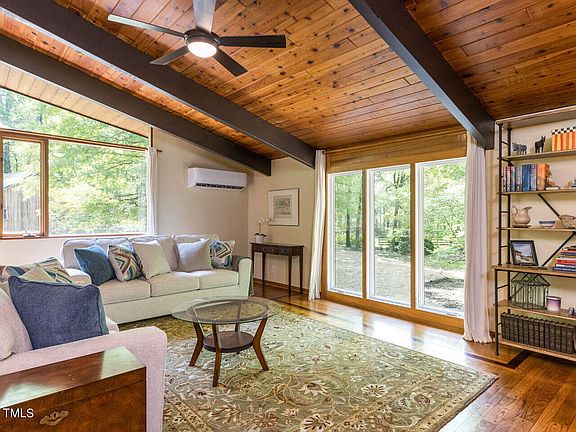 **OFFER DEADLINE TUESDAY April 23 at 5 PM. ** Deck House, Dream House! On almost 4 acres with a guest cottage and barn!! A true one of a kind, Post & beam construction, covered with tongue & groove cedar siding. Perfection of town & country, just six minutes to downtown through the rural buffer. In CHCCS schools and NO city taxes! This home and land have stories to tell and the current owners have lovingly magnified the special details in and out. Loads of flexible space with 5 could be bedrooms PLUS complete guest cottage. This home is so cool, it's on the NCModernist website of midcentury gems! Former riding ring is currently fenced play and garden space. Additional gardens ready for homesteading and barn outbuilding is solid as an oak tree with multiple semi-finished spaces and hay loft. Come be wowed by walls of windows, polished corners and room to roam. All in a gorgeous, large lot neighborhood with pond. Horses allowed.