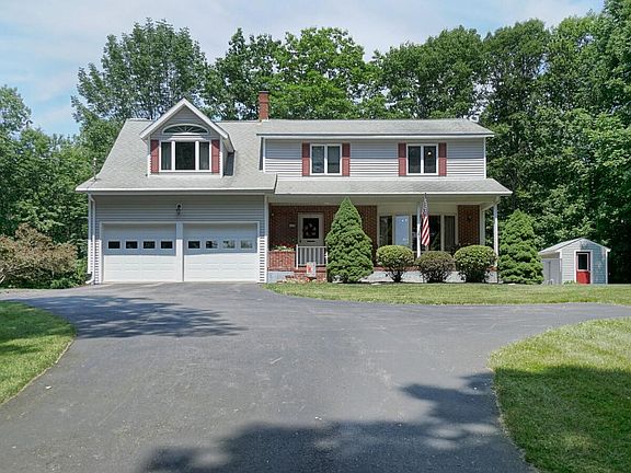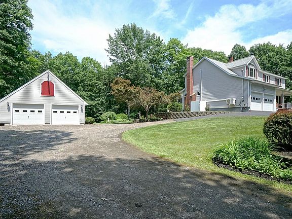 Welcome to 113 Wood Road! This property has been meticulously cared for inside and out by the current owners for over 30 years. Nicely tucked back away from the road on this 9.88-acre parcel. Inside you'll find an entry area with half bathroom, front living room with hardwood floors, granite kitchen with cherry cabinets and hardwood floors plus a family room with a gas fireplace. On the second level you'll find a primary suite with cathedral ceilings, double closets and a private bathroom, three additional bedrooms and a full common bathroom. The basement is a nice bonus space with a bar area perfect to catch the game, separate den/office, half bathroom, laundry area with a sink, a woodstove plus a dedicated workshop area. The rear deck and screen room overlook the gorgeous backyard and pond both spaces are ideal for your summer BBQs or to simply relax. In addition to the attached two-car garage there is a detached 24x26 heated two-car garage with walkup storage above. You'll love the manicured grounds, privacy and stunning flower gardens. This home is well equipped with a 200amp electrical service, on demand propane generator, heat pumps for efficient heating/cooling, a System 2000 boiler and Anderson Windows. Septic is designed for 3bedrooms/6people.