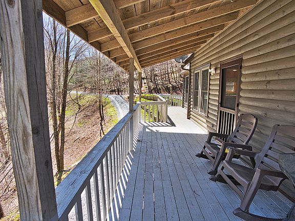 WOW! Charm Oozes from every corner of this property and home! Outdoor Living Space includes Covered Porches & Decks where you'll hear the soothing sounds of Rushing Little Elliay Creek! Log Sided Cabin in a Peaceful, Private Setting w/Winter Views. Mountain touches throughout with Beamed Tongue & Groove Ceiling, Pine Walls & Hardwood Floors. Sunny Kitchen has Vaulted Ceiling, Granite Counters, Newer Fridge, tons of Cabinets & Workspace. Guest Bedroom & Full Bath on Main. Upper Level Big Primary Bedroom, 21' X 19.3', Full Bath & Mt. Laurel Railing. Lower Level Game/Family Room, Bonus Room that could be used for more sleeping space, Full Bath, Laundry Room w/Storage and Easy Care Vinyl Plank Flooring. 2 Car oversized Carport (built 2017+/-), Large Powered Shed, and additional Storage Room off Lower Porch. Jelwyn Insulated Windows and Doors New 2018. Furniture & Items currently in home will stay! Bridge across Creek New 2019. Circular Driveway w/Driveup Access to both levels. Owners have Frontier Internet and DISH TV. Shared well with only one other lot. 3 Bedroom Septic System. 4WD or AWD needed. Cabin is not on Creek but you hear it Loud and Clear!