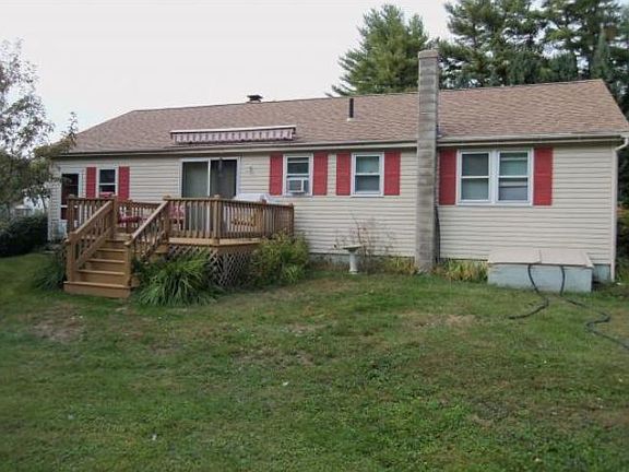 Well loved 2 bedroom Gilford Ranch set back from the road on a 1/2 acre yard. Town water/sewer..Plenty of room and SUN for your garden!Living room w/brick fireplace, dining area, appl'd kitchen and laundry, 12x12 sunny deck w/shade awning, and attached 1 car garage. Roof is 1 year new, chimney re-pointed Oct 2015, and average oil consumption is 495 gals+/-...Basement is a poured crawl space..Very affordable..and ready to go!! Sellers Agent is related to Seller by marriage.