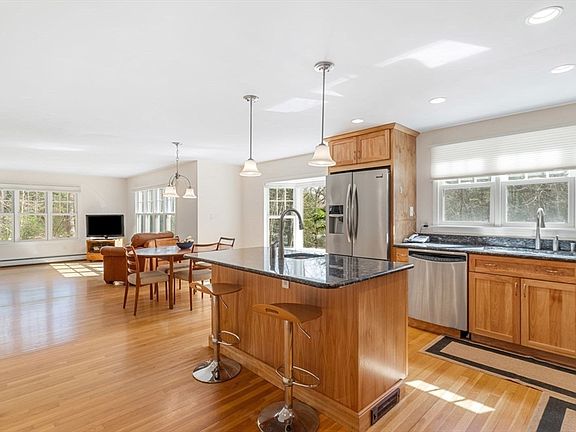 This picturesque cape-style home is tucked away into a well-established neighborhood, centrally located in Wayland on a large private wooded lot. The first floor boasts hardwoods throughout, fully-updated large eat in kitchen, laundry, half bath and sun-drenched living and dinning room. The first floor is finished off by a home office and the fully updated primary suite with ample closet space and a bonus cedar closet. The second floor offers two additional bedrooms with large double door closets and built-in dressers finished off with another full bath. The finished walk out lower level offers tons of natural light, a full bath with washer dryer hook-up and space for a playroom, family room or even a home gym. The outdoor space has a something for everyone, two patios, fully plumbed and powered workshop, two covered porches, large fenced in yard, meditation pond and a large private back yard. Showings to start Saturday 4/6, no public open houses.
