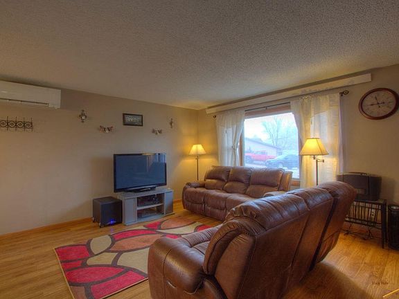 This exceptionally well-kept three bedroom home is situated on .38 acres in a nice cul-de-sac with tons of privacy in the back! In addition to the two-car garage, you will find a 23x12 parking area for your RV or boat. Beautiful flooring throughout the home with recent upgrades to include two Mitsubishi high-efficiency slim line split heat pump and cooling system. The upper level features two very spacious bedrooms, one with a walk-in closet a bathroom which has been completely remodeled with double vanities, new gorgeous tile flooring and walls, and light fixtures and mirrors. The basement offers an expansive family room with pellet stove, a third bedroom/office (NTC) in which, cove heating be added prior to closing. Located close to Ellsworth AFB and easy access to the interstate. This home is priced to sell and is a great value!