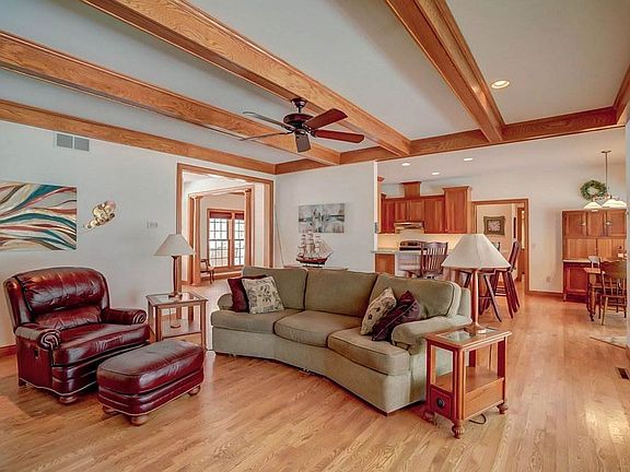 This custom built 4000 sqft luxury home rests on the majestic Wisconsin River. You will soak in break-taking views from the master bedroom that boasts a jetted tub, walk-in shower and WIC. The chef's kitchen has cherry cabinets, solid surface counter tops, stainless steel appliances and bfast bar. Sit by the wood fireplace and enjoy the beauty of the wood beams and abundant windows. Unwind on the covered southern-styled back porch while marveling at the bald eagles soaring over Louis Bluff. Enjoy the amenities which include a lodge, pool, tennis & basketball courts, and private beach.