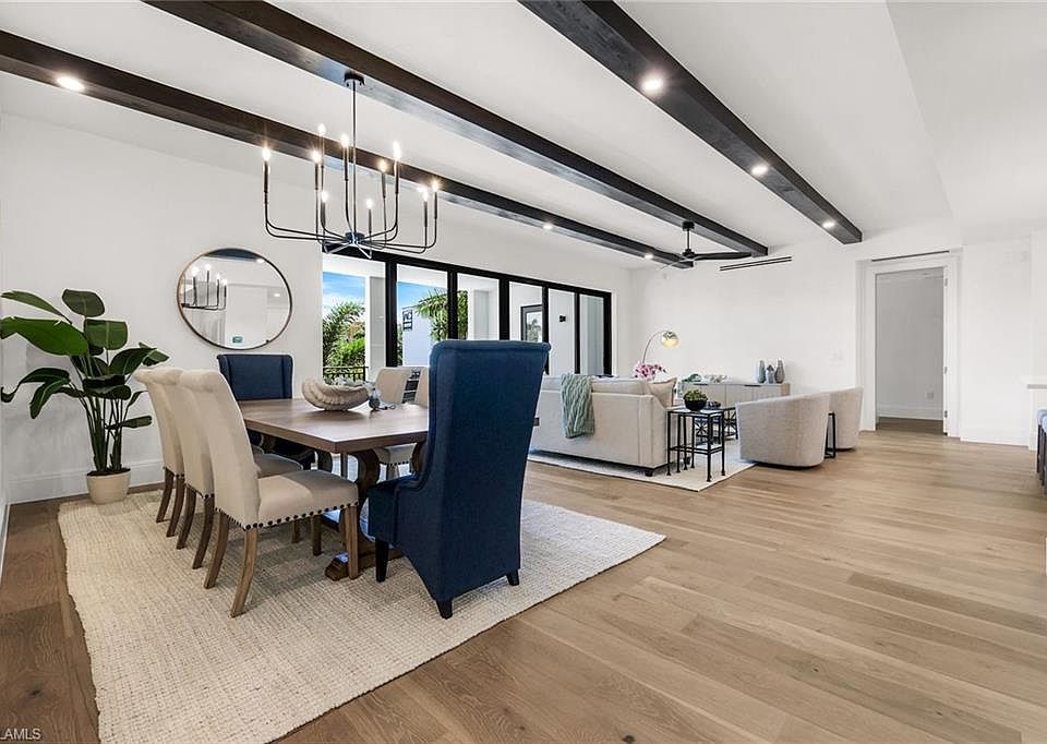 With its blend of elegant design, downtown energy, and coastal sophistication, Residence 211 is a NEW Residence, never lived in, at Quattro at Naples Square. Quattro offers an exceptional Naples lifestyle—refined, effortless, and perfectly situated in the heart of downtown, just blocks from the beach, the iconic 5th Avenue South and Third Street South dining and shopping districts, the arts district, and Naples Bay. Spanning 3,052 total square feet (2,748 under air), this beautifully designed residence features three spacious bedrooms, all en-suite with walk-in closets, plus a den and three-and-a-half custom baths, offering the perfect retreat for both relaxation and entertaining. Conveniently located on the amenities level, Residence 211 places the resort-style pool, spa, firepits, grills and social areas right at your doorstep, bringing the Quattro lifestyle to life with ease and accessibility. Inside, an open-concept floor plan blends style and functionality with soaring beamed ceilings, designer lighting, and Legno Bastone wide-plank wood flooring, creating a warm yet sophisticated ambiance. The gourmet kitchen is a chef’s paradise, equipped with top-of-the-line Sub-Zero, Wolf, and Miele appliances, exquisite quartz countertops, a gas cooktop, Sub-Zero wine refrigerator, and premium Dornbracht, Franke, and Toto fixtures. Each bathroom has been custom designed with luxury finishes that reflect the home’s refined coastal aesthetic. Additional features include an oversized laundry room, two deeded parking spaces, and secure, climate-controlled storage with private entry into the home. A covered outdoor terrace extends the living space, providing a peaceful setting for morning coffee or evening gatherings surrounded by lush, tropical landscaping. Quattro, the final and most luxurious phase of the Naples Square development, showcases stunning Coastal Contemporary and British West Indies–inspired architecture. Residents enjoy an array of first-class amenities including a heated resort-style pool and spa, outdoor firepits, pavilion bar and grilling stations, a state-of-the-art fitness center, and an elegant club room with bar, terrace, billiards, and large-screen televisions. The beautifully landscaped amenities deck features trellised seating areas, shaded cabanas, and thoughtfully designed spaces ideal for both relaxation and connection. For the Pet Lovers, Quattro is a pet friendly building. Quattro’s downtown vitality, unparalleled amenities, and exceptional architectural design make Residence 211 a truly distinctive opportunity to experience the best of downtown Naples living—where coastal luxury meets timeless comfort.