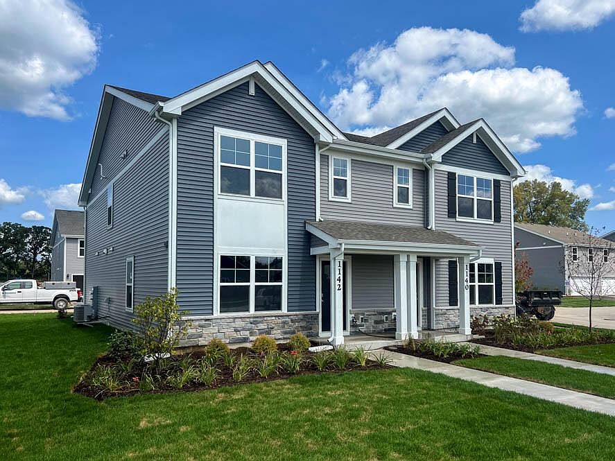 Brand New construction - summer move-in! 2 story townhome-style condominium has 4 bedrooms, 2.5 baths & a 2 car garage! Open concept main level includes LVP flooring and recessed lighting throughout. Kitchen has a large island with Quartz countertops, designer cabinetry, stainless-steel appliances, & pantry closet. Second floor boasts 4 bedrooms and 2 full baths, and laundry room! Primary bedroom includes private bath with double bowl raised vanity and spacious walk-in closet. Enjoy energy efficient features include ERV air exchanger & efficient furnace and Smart Home Technology that allows you to monitor and control your home from your smartphone. Builder warranty included. Photos of model home - actual home and inclusions may vary.