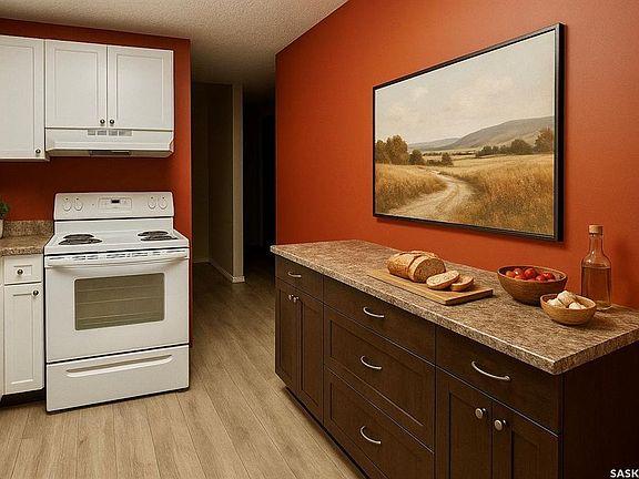 Welcome to this rarely available 2-bedroom, 2-bathroom condo boasting quiet south-facing views and 1,160 sq ft of comfortable living space. The spacious white kitchen offers ample cabinetry, generous counter space, and a full appliance package, seamlessly flowing into the oversized living and dining area. Step through the balcony doors onto your expansive 37-foot-long balcony, complete with convenient storage units at each end. Down the hall, you'll find a dedicated laundry space and two well-proportioned bedrooms. The sizable master suite is a true retreat, featuring its own 3-piece ensuite washroom, a wall air conditioner, and two large closets. This property presents an excellent opportunity for affordable living or a valuable addition to your revenue portfolio. Embrace the ease of condo living, where building maintenance, grass cutting, and snow removal are all taken care of for you. Conveniently located near the Aquatic Centre, various restaurants, Swift Current Comprehensive High School, and Irwin School. Call your REALTOR ® today and schedule your viewing!