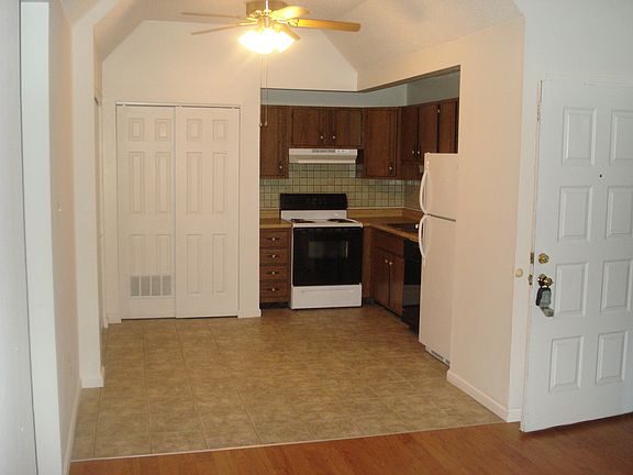 First floor, private entrance, vaulted ceilings, newer laminate wood floor, new white doors, new bathroom, new carpeting and pad, refrigerator, stove and dishwasher. There is a private deck. It is all electric. We pay for water, sewer and trash. The only utility you are responsible for is electric. There is plenty of parking.We require a $30 credit application.