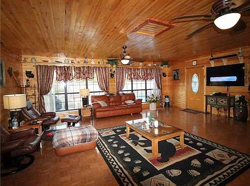 Located in the Barton Community, this 2800 sf home on 19.4 acres has many beautiful features. Inside it looks like a mountain cabin! Outside is a beautiful inground saltwater pool, new 1200 sf barn, great patio area w/ gas fireplace & shed. The land is completely fenced, great for horses! Must see!