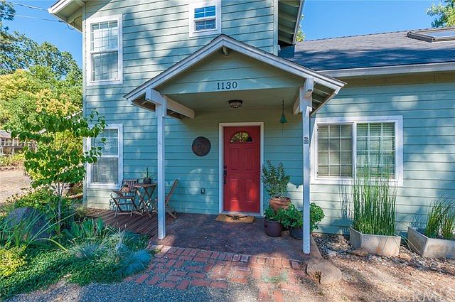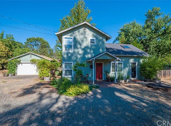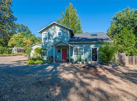 There is truly no place like this home when you step in to see this one of a kind, 1914 built farm house in central Paradise! Resting peacefully on almost half an acre, this magical property boasts an organic permaculture garden with countless fruit trees, shrubs, and vegetables. Step through the charming potting shed, and into an oasis of established blackberries, pears, pomegranates, and other native species. Just off the garden rests a fully enclosed chicken coop and run, with ample space for hens or even a dog. Inside this lovely cottage you will find beautiful hardwood floors, a farmhouse kitchen with vintage stove, and raw edge wood bar. Abundant with natural light throughout, step through French doors which take you to the covered patio which overlooks a verdant and meticulously landscaped backyard with ferns, flower beds, and a clawfoot tub for soaking under the stars. One full bathroom rests beautifully downstairs off the kitchen and laundry area, with the second bath upstairs sandwiched between two generously sized bedrooms. The master bedroom boasts a pass through closet, and is imbued with farmhouse charm as you sleep amongst the stars and peek above the pines through two rooftop windows which open up to the sky. The second bedroom features hardwood floors and a nook for a library or small office. The detached 2 car garage is extra deep for tinkering and projects. This home is an absolute delight! Unique is an understatement! It is admired by all who see it.