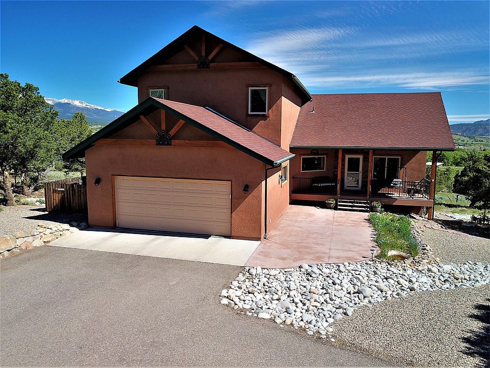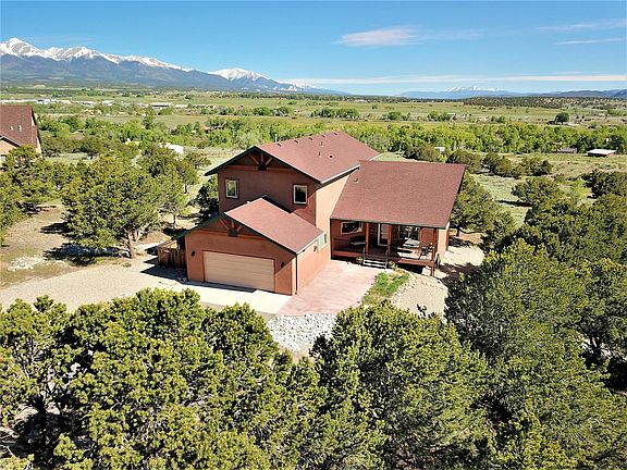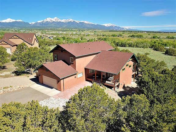 Great custom home in the areas finest riverfront community! Spectacular views of the Collegiate peaks from throughout the home. Relax on the back deck, front porch with stamped concrete patio or upper level balcony. Lots of outdoor living space! Private access to 2/3 mile of the South Fork of the Arkansas River and B.L.M. Over 2 miles of trails and nearly 15 acres of open space. 4 bedrooms, 2 full and 2 half baths, vaulted ceilings and open floor plan make this home a must see!