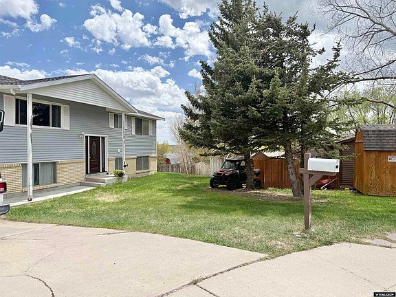 !! NEW REDUCED PRICE!! Private 4bed, 2bath home with an amazing yard!! Great location, tucked back in a cul de sac, brand new roof, nice 2car garage attached. Upper level has updated bathroom & 3 nice bedrooms, kitchen & dining room with walk out to the back yard deck. Garden level basement has nice big family room with gas log, new shower in the basement 3/4 bath, huge laundry room with tons of extra storage. Back yard is massive, tons of room for many different options...nice garden or greenhouse, play area or just many more trees! Call Heidi Despain - Quality Realty 307-723-5954 - with any questions or to schedule a showing